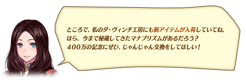 「新規魔術礼装の追加」、「聖杯の使用機会の追加」、「ダ・ヴィンチ工房での新商品追加」などの新規追加を行っていきます。