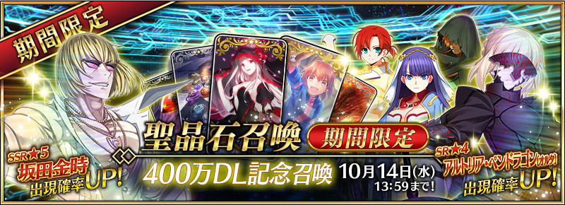 400万DL突破キャンペーンの開催を記念して、期間限定サーヴァント「★5(SSR)坂田金時」が新登場!